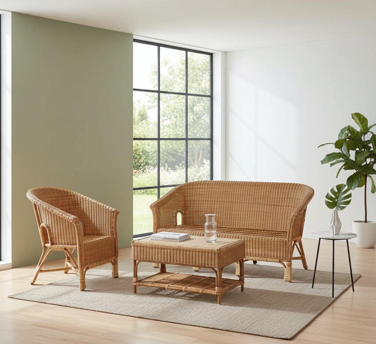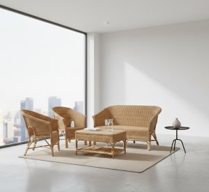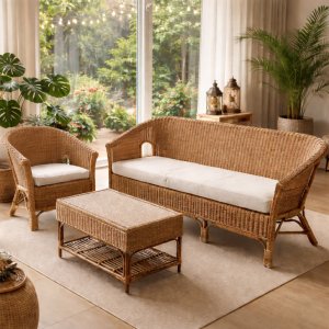 Cane made 5 seater sofa set with center table